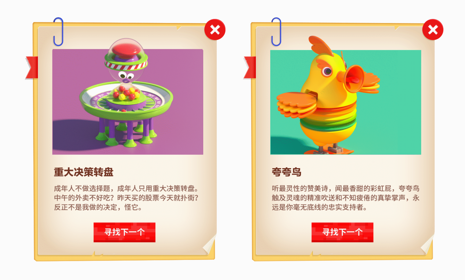 The concept of our campaign is to give new life to old toys. We conceived a simple collection game. We created 6 toy characters in the game and the game players need to find them among the characters of Toy Story 4. We collected some internet meme,our common “disease” like procrastination, decidophobia, etc. Before transformation, they are ordinary toys. When the player taps them,they will transform and have the magic ability to solve those “diseases”. We hope to use humorous text and creative toy design to help players to reduce their pressure and retrieve the fun and joy of childlike innocence. We hope to implant the concept of public welfare through toy donation campaign and pass on the information that the donated old toys will get a second life.